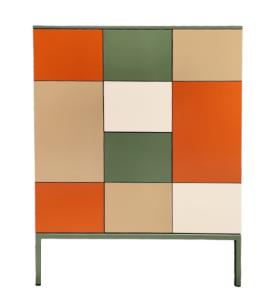 Dimensions : l 75 x h 90 x p 41 cm 2 portes 1 étagère Piètement métal laqué Collection : Quadrik Meuble signé, de création et fabrication françaises commode