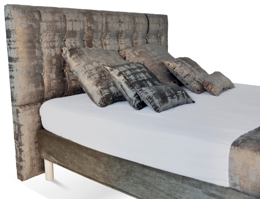 Tête de lit déco avec un superbe tissu moiré gris.