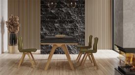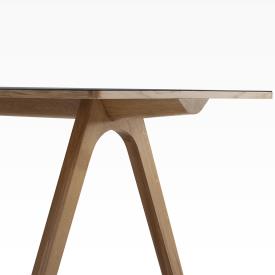 Dasras Design. Guillaume Delvigne Dimensions : l 140/.../250 x h 75 x p 90/100 cm Découvrez la table Chevron, une création remarquable du designer Guillaume Delvigne, inspirée par les éléments de la charpenterie. Disponible en plusieurs dimensions et finitions, cette table incarne l’esthétique et la fonctionnalité. Que ce soit comme table de salle à manger, table de cuisine ou table de travail, la table Chevron allie un design élégant inspiré de la charpenterie avec une polyvalence inégalée. Structure en bois massif de votre choix, chêne et noyer us. Dessus Bois : Plaqué façon massif 9/10ème sur mdf de 30 mm avec alèses en bois massif. Dessus céramique : Plaque de céramique 6 mm collée sur mdf de 24 mm avec alèses en bois massif. Allonges de service plaquées. Système de tirettes métalliques en bout de table. table de réunion