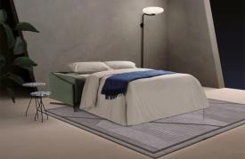 Mécanisme : canapé-lit convertible avec sommier standard électrosoudé et pieds h 13 cm.