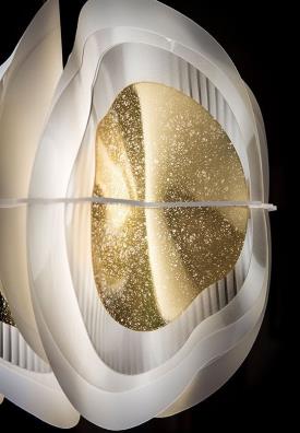 Designed by Paolo D'Arrigo Fiordlys s'inspire des vagues sinueuses des aurores boréales et des mouvements des falaises nordiques. Dans un contexte métropolitain où la vitesse et le chaos perturbent l'équilibre humain, Fiordlys apporte la brise fraîche et calme de la nature au centre de la maison. Fiordlys est hautement personnalisable dans ses finitions. En effet, conçue en deux versions de suspension - ronde et linéaire - et en une version d'applique murale, elle est disponible en trois finitions différentes : White, Gold et Silver.