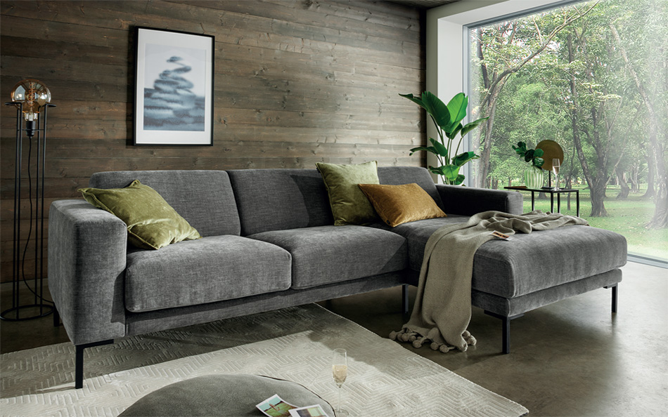 Dimensions : l 132/.../344 x h 79 x p 93/.../268 cm - Revêtement : tissu - Pieds : Métal canapé